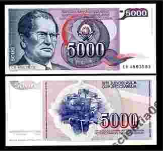 Jugosławia 5000 DINARA P-93a 1985 UNC