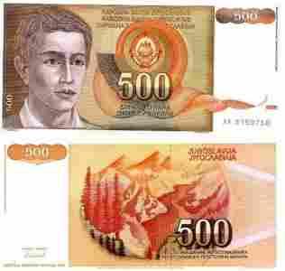 Jugosławia 500 dinarów P[zasłonięte]109 19 Stan I UNC