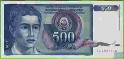JUGOSŁAWIA 500 Dinara 1990 P106 AS UNC Góry