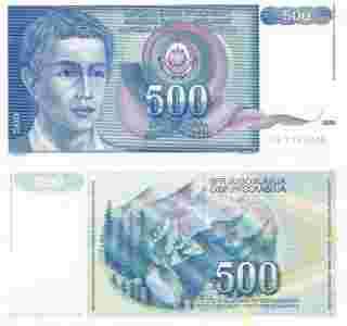 JUGOSŁAWIA 500 DINARA 1990 P-106 UNC