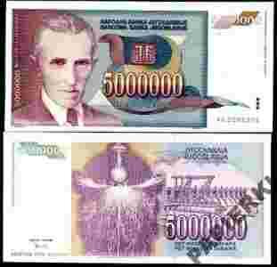 Jugosławia 5 000 000 Dinara 1993 P-121 UNC