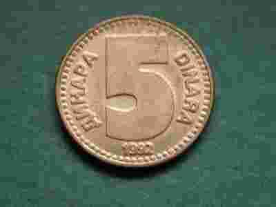 Jugosławia 5 dinarów 1992 - rzadkość !