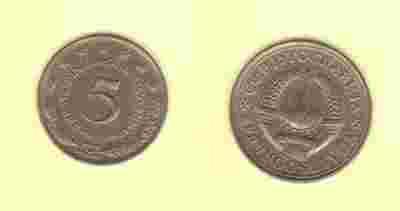 Jugosławia 5 Dinara 1975 r.