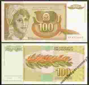 Jugosławia- P-105 - 100 dinar - 1990 - seria AP