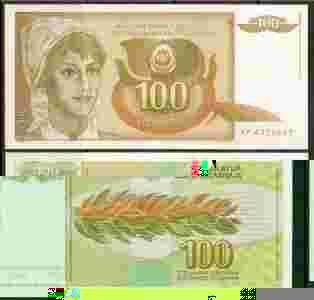 Jugosławia- P-105 - 100 dinar - 1990 - seria AP