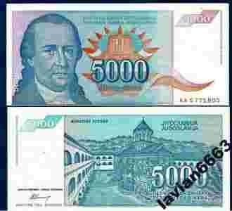 JUGOSLAWIA 5000 DINAROW 1994 r. P-141 UNC