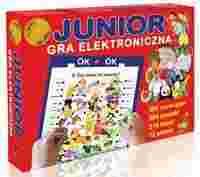 OPIS GRY:Gra pomaga dzieciom w wyszukiwaniu różnic, w odnajdywaniu i kojarzeniu wspólnych cech oraz w poznawaniu kształtów. W trakcie zabawy dzieci rozwijają analizę i syntezę wzrokową. Na 12 planszach znajdują się 504 rysunki i 216 haseł, które należy ze sobą skojarzyć. Dzieci poznają zawody, zwierzęta, przedmioty, antonimy oraz uczą się poprawnej pisowni trudniejszych wyrazów. Przy każdym rysunku umieszczony jest punkt. Jeżeli gracz zna odpowiedź dotyka specjalnymi długopisami odpowiednie dwa punkty na planszy. Przy prawidłowej odpowiedzi lampka zapali się, w przypadku złej - nie. Uwaga: podczas gry umieszczamy w pudełku tylko jedną planszę; przed przystąpieniem do gry należy zainstalować baterie 9V (gra nie zawiera baterii). Gra zawiera 12 tematycznych plansz: 1. Kolorowe dinozaury. 2. Wesoły alfabet. 3. Czy znasz te zwierzęta? 4. Wesołe skojarzenia. 5. Wiejska zagroda. 6. Bajkowe fragmenty. 7. Znajdź właściwy cień. 8. Czy znasz te zawody? 9. Liczebniki pełne witamin. 10. Szukamy antonimów. 11. Nasz pokój. 12. Duety ortograficzne. PUDEŁKO ZAWIERA: 12 plansz podstawka z długopisami