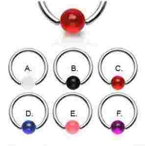 Kółko zamykane kolorową akrylową kulką 1.6/12/5