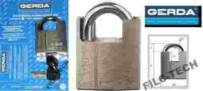 - Wykonanie korpusu kłódki z kompozycji materiałów miękkich i twardych (opatentowana technologia GERDA pod nazwą HSS - Hard&Soft System), zabezpiecza przed rozwierceniem kłódki,