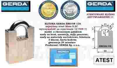 KŁÓDKA GERDA ZIRCON 116 z atestem ATEST C kłódki!!