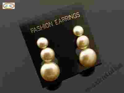K8477 RETRO kolczyki PERŁY klasyczne 3 pary ECRU