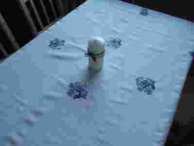 K-B Śliczny haftowany obrus len i niebieskie hafty