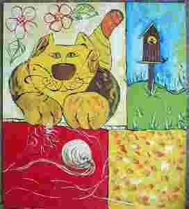 K.Czech__Kot i budka dla ptaków_prezent_35,5x40