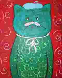 K.Czech kot zielony prezent 40x50