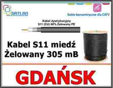 Kabel antenowy RG11 miedź Cu 60% żelowany PE 305 m