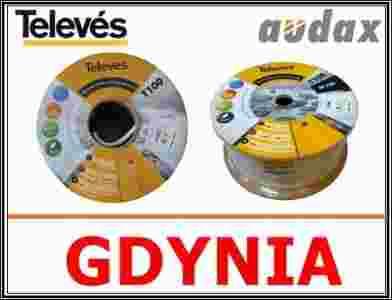 Przewód wewnętrzny kabla Televes T-100 o średnicy 1,13mm wykonany jest z miedzi. Folia ekranująca, jak i oplot kabla wykonany z aluminium o pokryciu wyższym niż 73% co zapewnia pełną zgodność ze standardem Klasy A. Kabel posiada bardzo dobre parametry tłumiennościowe i można go stosować
