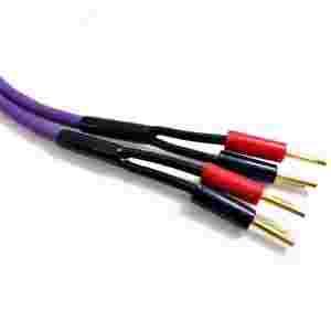Separacja tych tonów od częstotliwości średnich i wysokich sprawia, że kabel oferuje znakomitą barwę dźwięku oraz sprawdza się w każdym zakresie tonów. Wtyki bananowe są pozłacane. Powłokę zewnętrzną wykonano ze wzmocnionego PCV w kolorze fioletowym. Dzięki temu kabel jest odporny na ścieranie oraz uszkodzenia mechaniczne. Można instalować go pod tynkiem.