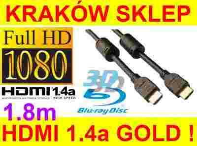 * Kabel HDMI-HDMI 1,4 GOLD 1.8m (końcówki pokryte 24-karatowym złotem wraz z dławikami)