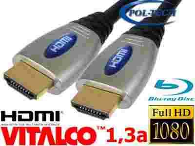 Wysokiej klasy przewód HDMI VITALCO w standardzie v1.3a wykonany z miedzi beztlenowej OFC z pozłacanymi pinami.