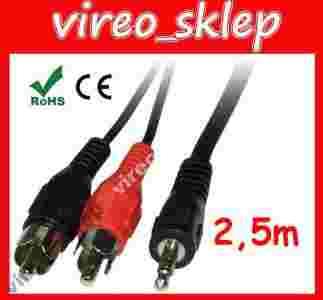 KABEL Audio 2,5m Jack 3,5mm stereo - 2x RCA (cinch) renomowanej marki Gembird