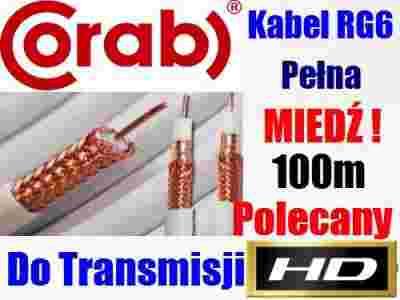 Kabel Koncentryczny RG6 100% CU Pełna MIEDŹ DVB-T