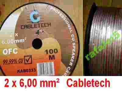 Cena za 100mb ( rolka przewodu ) . KOLOR izolacji : przezroczysta Profesjonalny kabel głośnikowy 99,99% CU - patrz foto Przekrój żyły miedzianej: 2 x 6,00mm2 - patrz foto . Długość przewodu w rolce : 100m.