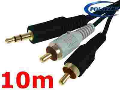 Kabel przewód JACK 3,5 - 2x RCA chinch GOLD 10m
