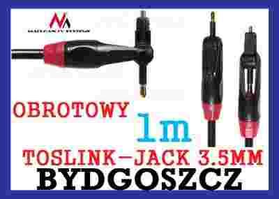 Kabel przewód optyczny - obrotowe wtyki TOSLINK / JACK - 1m