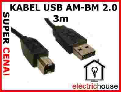 KABEL USB 2.0 typ AM - BM 3m | wysyłka 24h |