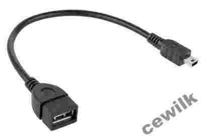 Kabel USB gniazdo A - wtyk mini USB 20cm OTG