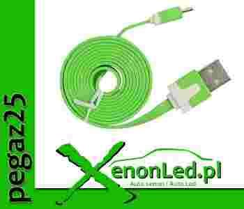 KABEL USB płaski - MICRO USB synch-ład ZIELONY