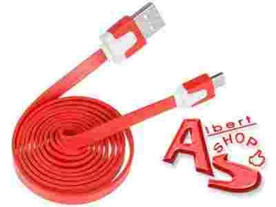 KABEL wty micro USB wtyk USB A czerwony płaski 1m