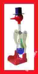 Ostatecznie, kiedy dziób uderza o szkło, rurka jest tak nachylona, że ciecz nie dopływa już do niej z dolnej bańki. W konsekwencji ciecz szybko opada i kaczka powraca do pozycji pionowej.