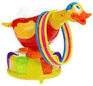 Gdy uda się maluchowi wrzucić kółko na szyję kaczki, kaczka zatrzyma się i w nagrodę zacznie ruszać skrzydełkami.