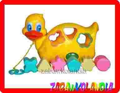Przedmiotem aukcji jest duża kaczuszka - sorter. Zabawka edukacyjna, doskonale rozwijająca zdolności manualne naszych maluchów, wyobraźnię oraz koncentrację. Kaczuszka jest zabawką wielofunkcyjną. Posiada w zestawie 6 dużych, różnokolorowych klocków, każdy w innym kształcie. Zabawa polega na dopasowaniu sześciu klocków do odpowiednich otworów. Zabawka rozwija zdolności logicznego myślenia. Podczas zabawy dziecko poznaje różne kolory, kształty, kierunki.