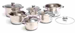 Fabrycznie nowy zestaw garnków ze stali nierdzewnej 18/10 chromowo-niklowej z kapsułowym dnem, 5-warstwowym o podwyższonej grubości 1,5 cm. Stal, z której wykonano naczynia charakteryzuje się tzw. niskim poziomem porowości, dzięki czemu naczynia są łatwe do utrzymania w warunkach higienicznych w gospodarstwach domowych. Stal jest dobrej jakości i w porównaniu do naczyń np. z aluminium w wyższej temperaturze nie powoduje dużej migracji cząsteczek do pożywienia.