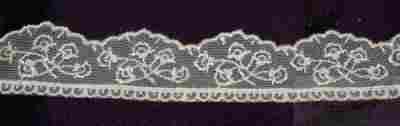 Wąska koroneczka, haftowane na tiulu delikatne wzory.