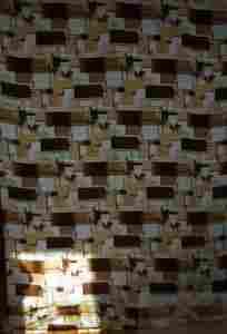 Ciekawy wzor z brazowych nieregularnie porozrzucanych czworoboków.