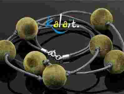 __KALAIT_Naszyjnik Velurowy oliwkowy - srebro 925.