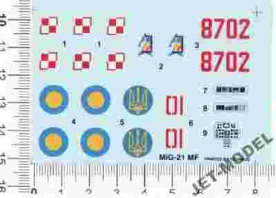 Kalkomanie bez schematu MIG 21MF POL/UKRAINA