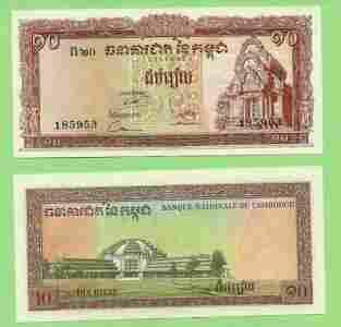 Kambodża 10 Riels 1975 P11d Stan I (UNC)