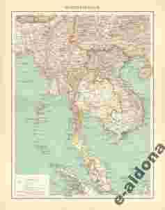 KAMBODŻA, BIRMA. PIĘKNA MAPA Z 1902 r. Oryginał