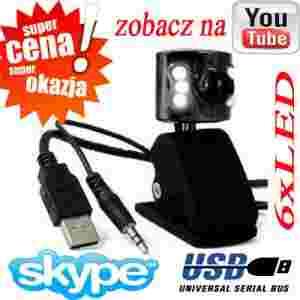 KAMERA INTERNETOWA USB 8 Mpix,6 Led,Klips,Mikrofon