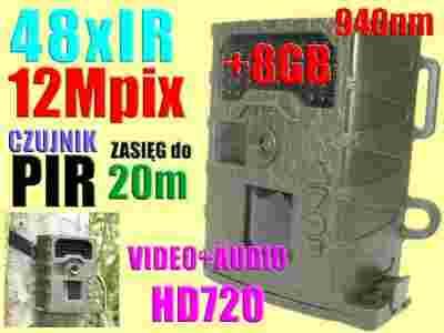 KAMERA LEŚNA NAGR VIDEO+AUDIO HD720 DZIEŃ/NOC+8GB