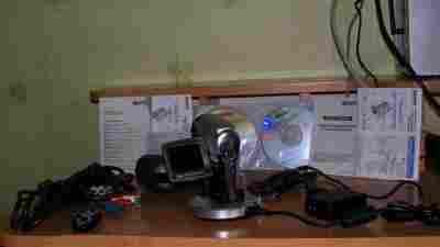 Oprócz kamery są także: dekielek na obiektyw, 2 oryginalne i sprawne akumulatorki, 2 płyty CD, instrukcje obsługi i sztywny, twardy futerał typu łupina, pilot zdalnego sterowania (brak baterii – standardowa bateria guzikowa dostępna w każdym sklepie komputerowym i u zegarmistrza), zasilacz (brak kabla sieciowego – standardowy kabel typu dwulistna koniczynka, do kupienia dosłownie wszędzie, można pożyczyć z radioodtwarzacza), stacja dokująca, kabel USB, kabel do telewizora (standard definition), drugi kabel do tv (high definition).