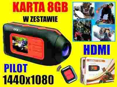 KAMERA SPORTOWA NARTY DESKA NA KASK LCD PILOT +8GB