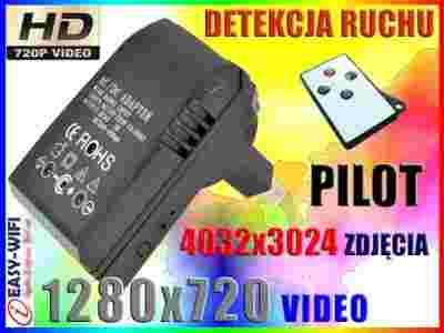 Kamera pozwala na rejestrację zdarzeń i dźwięków interesujących użytkownika w dowolnym momencie na karcie microSD - urządzenie kształtem przypomina typowy zasilacz sieciowy - po podłączeniu może pracować bez przerwy