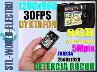 KAMERA SZPIEGOWSKA HD DYKTAFON DETEK. RUCHU +8GB