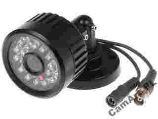 Zewnętrzna kamera w metalowej obudowie w kolorze czarnym, wyposażona w przetwornik Sony Super HAD CCD i oświetlacz podczerwieni.