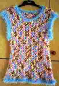 Witam na mojej aukcji i proponuję niepowtarzalną, nową, ozdobną kamizelę - bezrękawnik. Wykonaną ciekawym ażurem na szydełku z rewelacyjnej, ozdobnej, melanżowej, mięciutkiej włóczki. Charakterystyczne wykończenia trawką - włóczka ozdobna - dodają swoistego uroku. Oryginalna, ciekawa ucieszy każdego właściciela - polecam i zapraszam na inne moje aukcje.